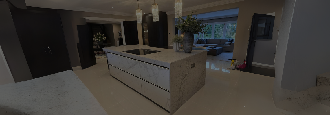 Dekton Rem is a sophisticated sintered stone inspired by classic Calacatta marble, featuring elegant grey veining with touches of gold. In this high-spec kitchen renovation, Rem was chosen for its luxurious look and unmatched durability.