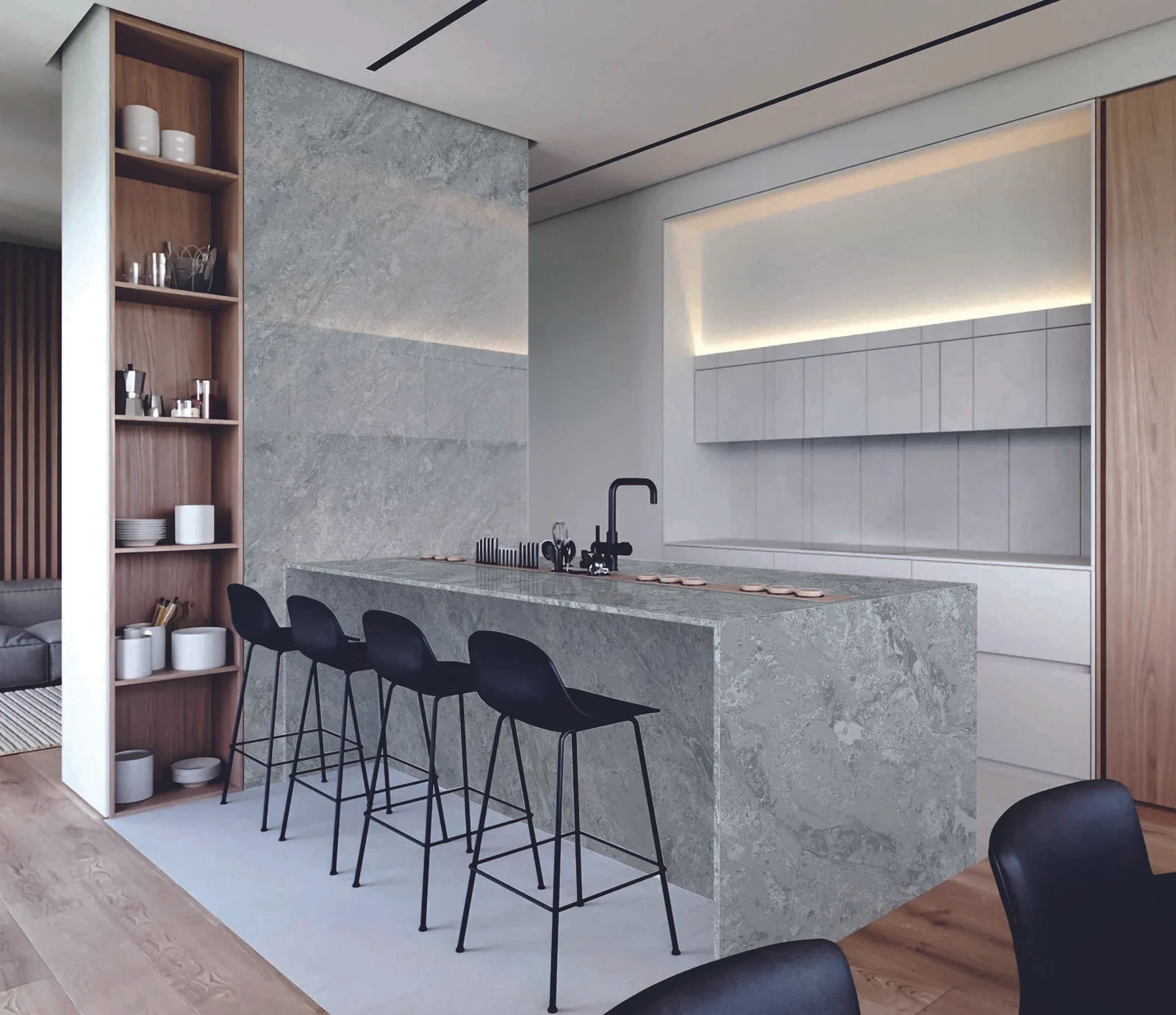 Contemporary mid-tone grey quartz slab
