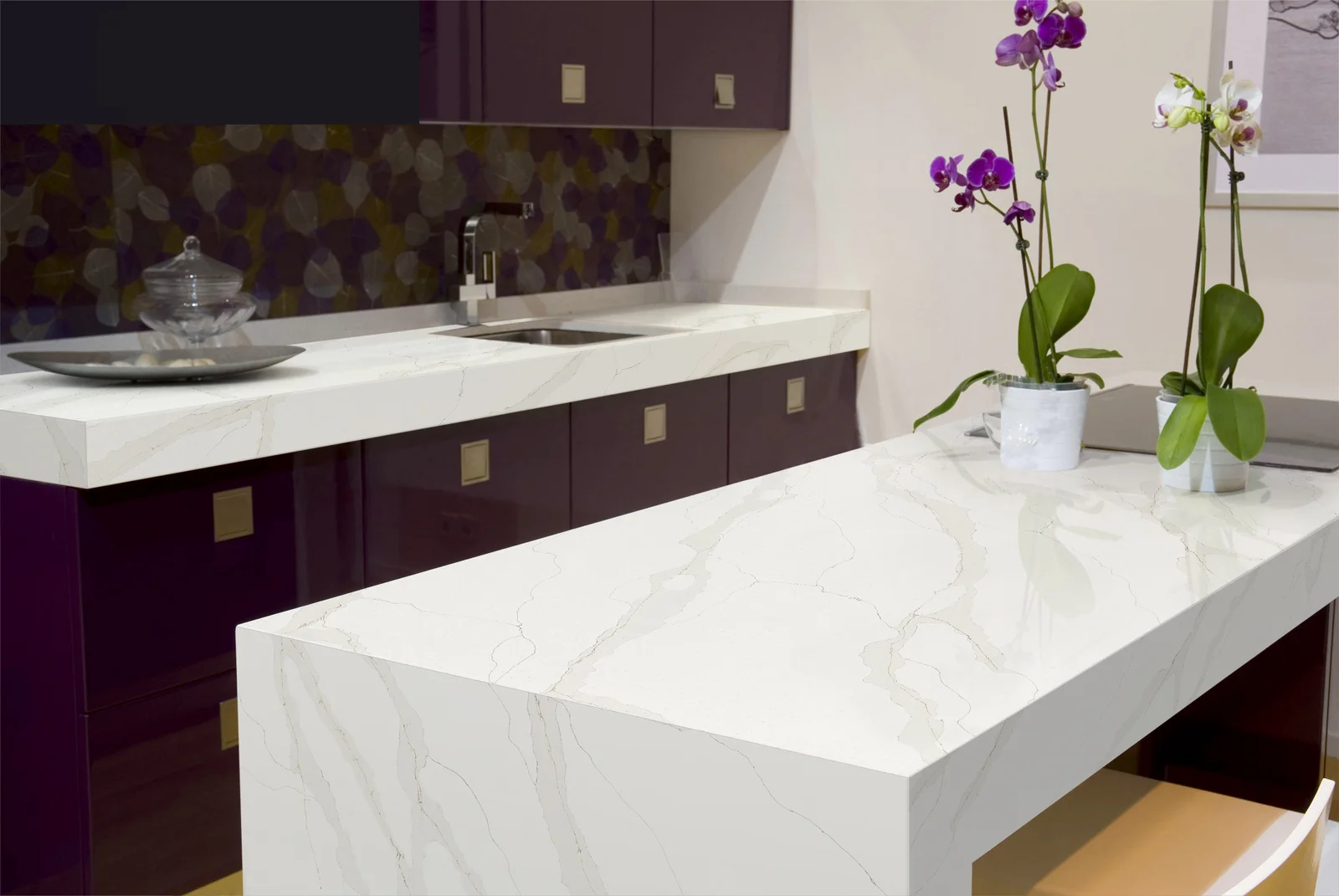 Elevate your modern interior featuring the refined elegance of ivory veined quartz.