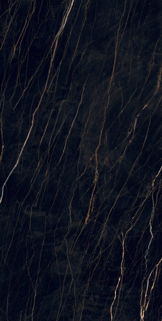 Dark and dramatic black stone with intricate serpent-like veins.