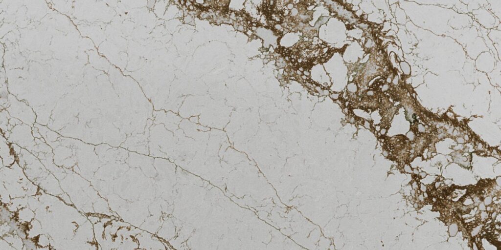Off-white slab with rich bronze veining – warm statement surface
